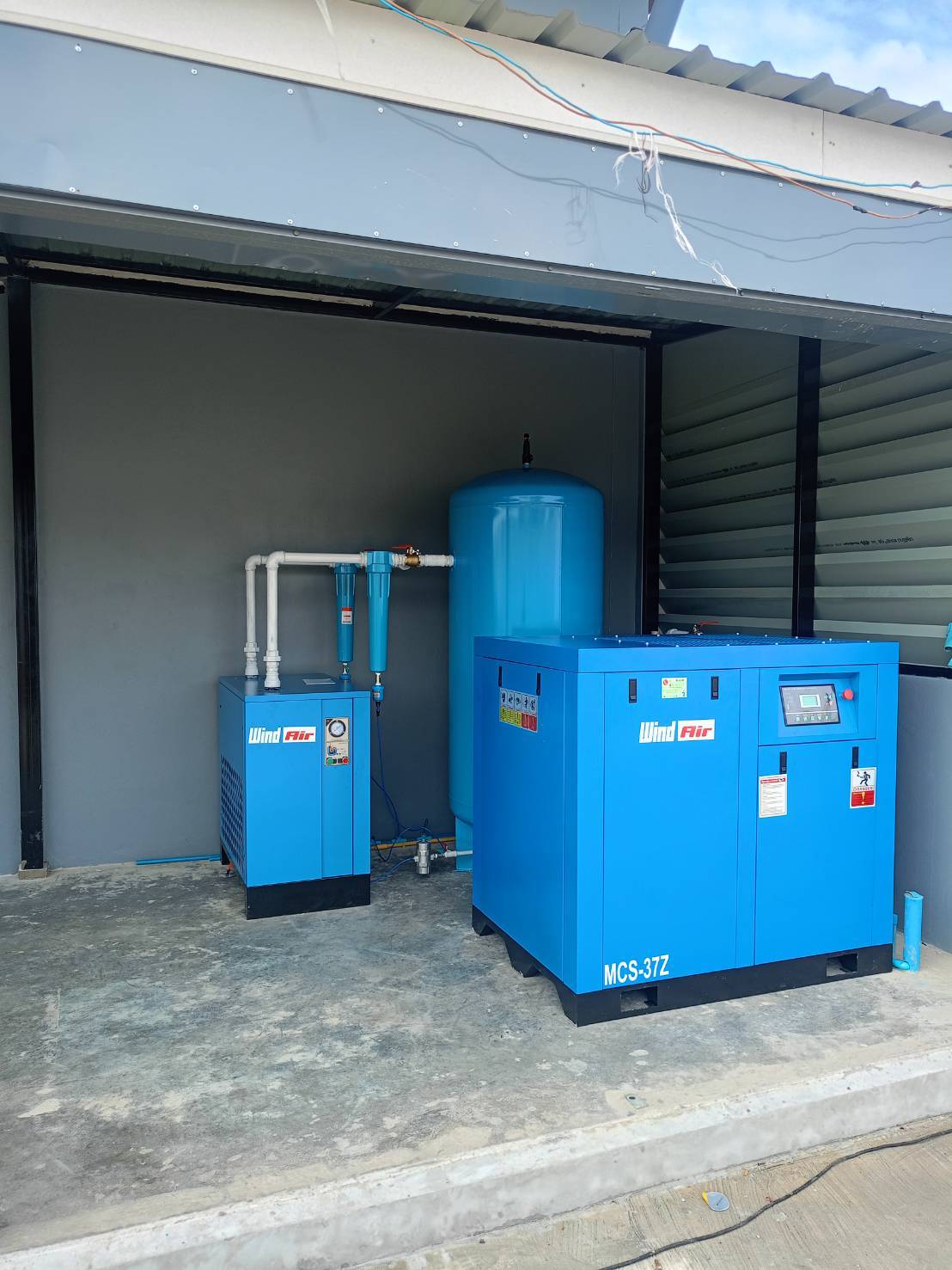 - ปั๊มลมสกรู Wind Air เหมาะกับอุตสาหกรรมสิ่งทอ ใช้ลมในการขับเคลื่อนเครื่องทอผ้า, เครื่องย้อมผ้า, และระบบทำความสะอาด